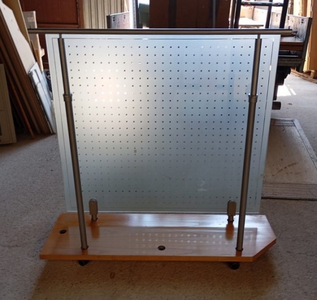 Used clothes holder, with glass back, adjustable height and wheels. In good condition. Dimensions: 139x45x130cm. Price: 200€.