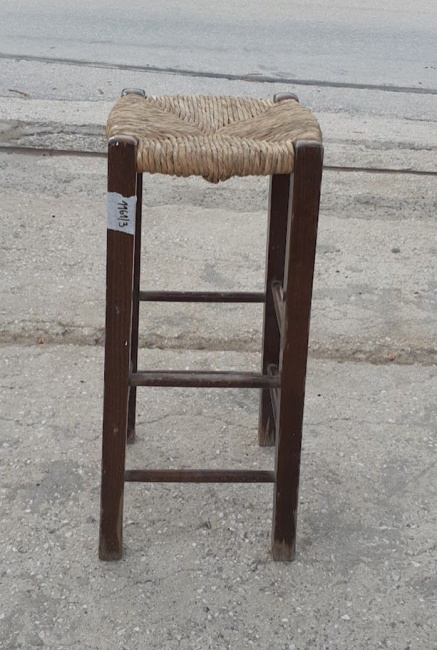 Μεταχειρισμένο σκαμπό μπαρ, ξύλινης κατασκευής με κάθισμα από ψάθα. Σε καλή κατάσταση. Διαστάσεις: 30x30x78 εκ. Τιμή: 25€/τμχ