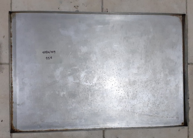 Used professional aluminum baking trays, suitable for ovens. In good condition. Dimensions: 60x40 cm. Price: €15/pc.