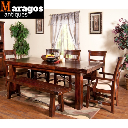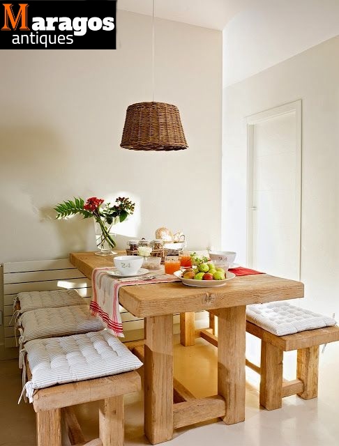 Σετ τραπεζαρίας διαφόρων διαστάσεων και χρωμάτων με πάγκους, σκαμπό και καρέκλες