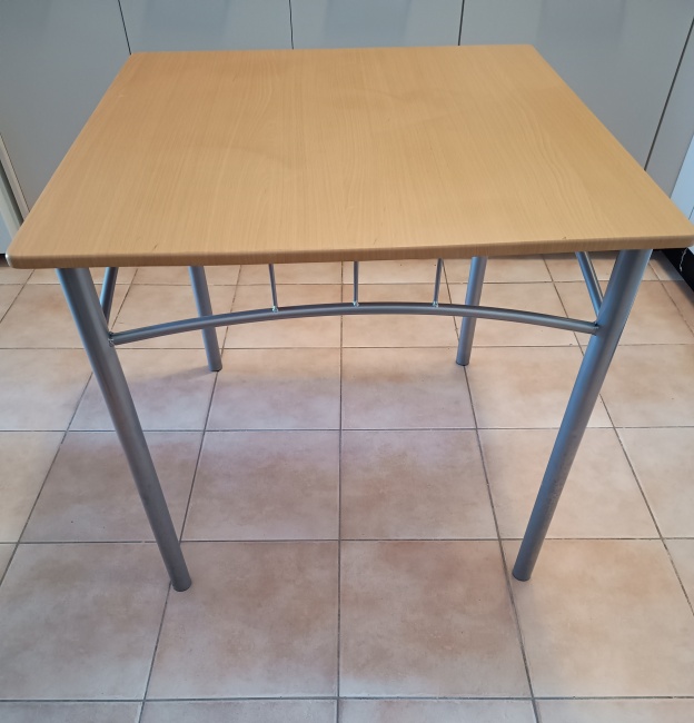 Τραπέζι κουζίνας με επιφάνεια από ξύλο και μεταλλικά πόδια. Διαστάσεις: (80*80*76)cm
