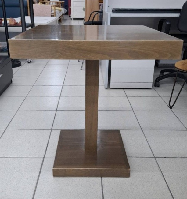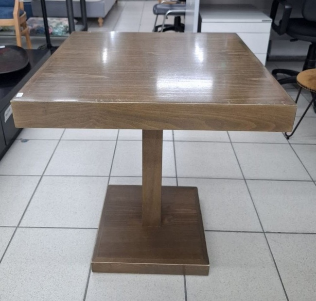Μεταχειρισμένo τραπέζι καφετέριας, καφέ χρώμα, με ξύλινη βάση και ξύλινο καπάκι. Σε καλή κατάσταση. Διαστάσεις: 64x64x74 εκ. Τιμή: 40€/τμχ.