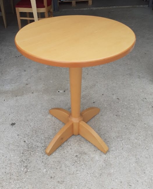 Used, wooden tables, indoor. In good condition. Diameter: 60cm, Height: 74cm. Price: 40€/pcs.