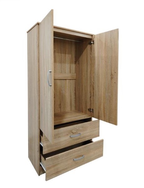 New 2-door wardrobe, in sonoma finish. With two large drawers and internal hanging rail. In good condition. Dimensions: 80x42x180 cm. Price:120€/pc.