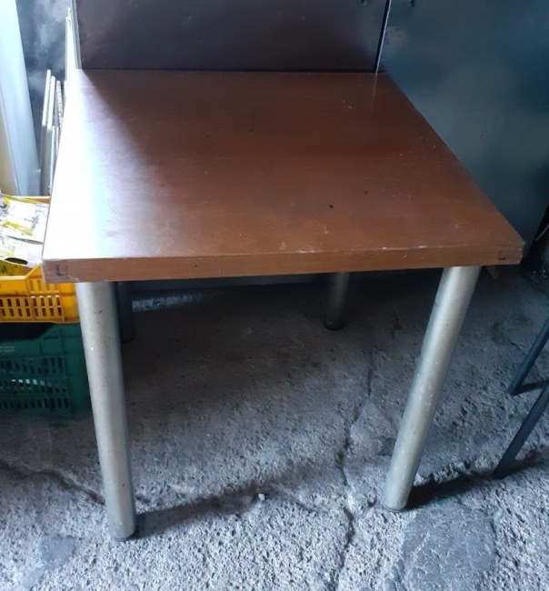 Used table with wooden top and aluminum base. In good condition. Dimensions: 75x75x75 cm. Price: 30€/pcs.