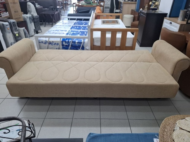 Μεταχειρισμένος καναπές κρεβάτι, μπεζ χρώμα. Διαθέτει αποθηκευτικό χώρο. Σε καλή κατάσταση. Διαστάσεις: 228x70 εκ (κλειστός) και 228x100 εκ (ανοιχτός). Τιμή: 150€/τμχ.