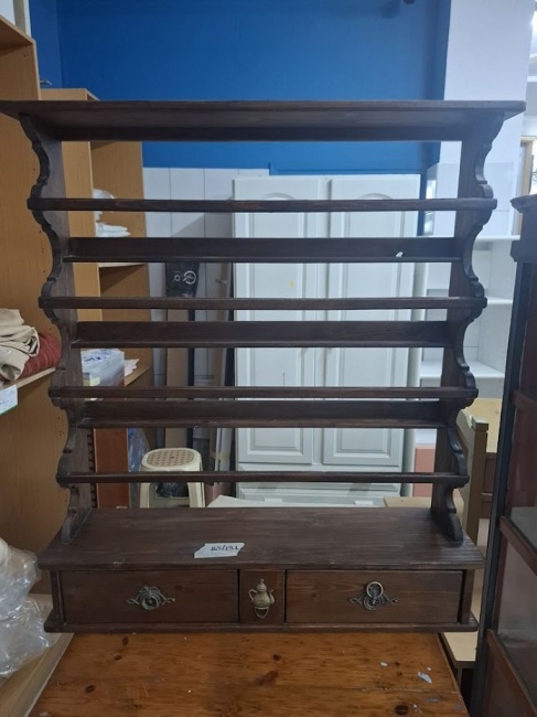 Used wooden, traditional plate rack, with 2 drawers and 3 shelves. In good condition. Dimensions: 90x21x101 cm. Price: 170€
