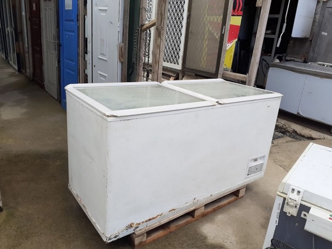 Used chest freezer, with 2 opening- glass doors. In good condition. Dimensions: 166x73x84 cm. Price: 200€/pcs.