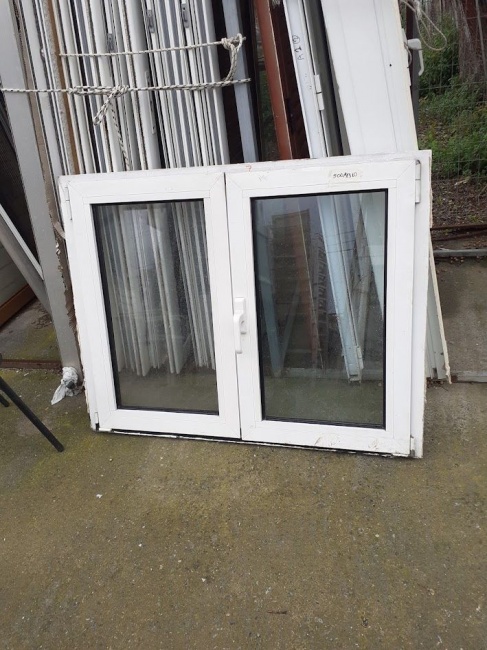 Μεταχειρισμένα δίφυλλα παράθυρα αλουμινίου με διπλά τζάμια. Σε καλή κατάσταση. Ενδεικτικές διαστάσεις: 115x100 εκ. Τιμή: 250€/τμχ