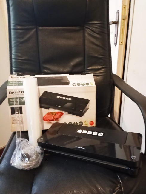 Καινούργια συσκευή συσκευασίας τροφίμων σε κενό αέρος, αχρησιμοποίητη. Ιδανική για διατήρηση φρεσκάδας τροφίμων καθώς παρατείνει τη διάρκεια ζωής των τροφίμων, κατάλληλη για κρέας, ψάρι, λαχανικά, τυριά. ξηρούς καρπούς κ.α. Ιδανική για κατάψυξη. Εύκολή στη χρήση και πρακτική για κάθε κουζίνα. Περιλαμβάνει σακούλες. Μάρκας Silver Crest.