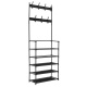 Ολοκαίνουργια κρεμάστρας-παπουτσοθήκη από ανοξείδωτο σίδερο και πλαστικό σε μαύρο χρώμα. Διαθέτει 7 κρεμάστρες και 5 ράφια. Διαστάσεις: 62x29x170εκ. Τιμή: 25€.