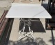 Μεταχειρισμένο τραπέζι εξωτερικού και εσωτερικού χώρου, με μεταλλική βάση και καπάκι μελαμίνης. Σε άριστη κατάσταση. Διαστάσεις: 93x56x72εκ. Τιμή: 60€.