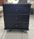 Μεταχειρισμένο κομοδίνο με τρία συρτάρια σε μαύρο χρώμα. Σε άριστη κατάσταση. Διαστάσεις: 44x36x52. Τιμή: 25€.