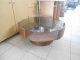 Ξύλινο στρογγυλό τραπεζάκι, με γυάλινη επιφάνεια, σε καλή καταστάση. Τιμή 50€ (τεμ)